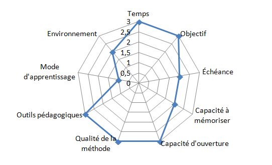 Au vu des données indiquées dans la colonne “hypothèse”, on obtiendra alors cette figure sachant que plus la toile d’araignée est étendue et plus votre apprentissage sera efficace et rapide :