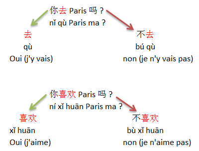 Dans le cas général présenté, vous constatez donc que (pratiquement) n’importe quel verbe constitue à lui-seul une réponse positive (ou négative en lui ajoutant le suffixe de la négation devant), ce qui fait qu’il y a plusieurs façons de dire oui (ou non) en chinois !