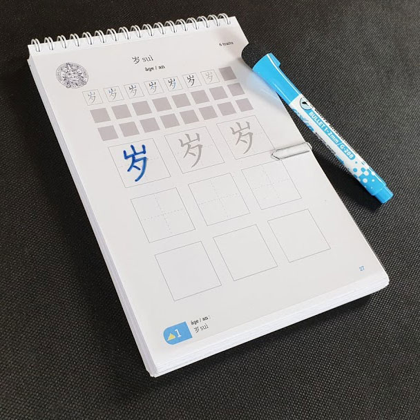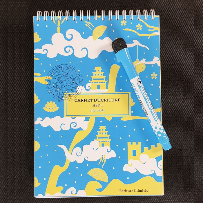 Entraînez-vous à écrire les 150 mots du HSK 1. Très pratique et ludique, ce carnet d’écriture vous permet d’écrire les caractères autant de fois que vous le souhaitez grâce au feutre spécial et à la feuille transparente fournis.