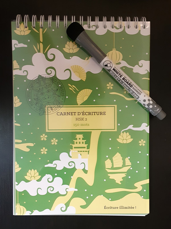 Entraînez-vous à écrire les 150 mots du HSK 2. Très pratique et ludique, ce carnet d’écriture vous permet d’écrire les caractères autant de fois que vous le souhaitez grâce au feutre effaçable et de son embout effaceur.