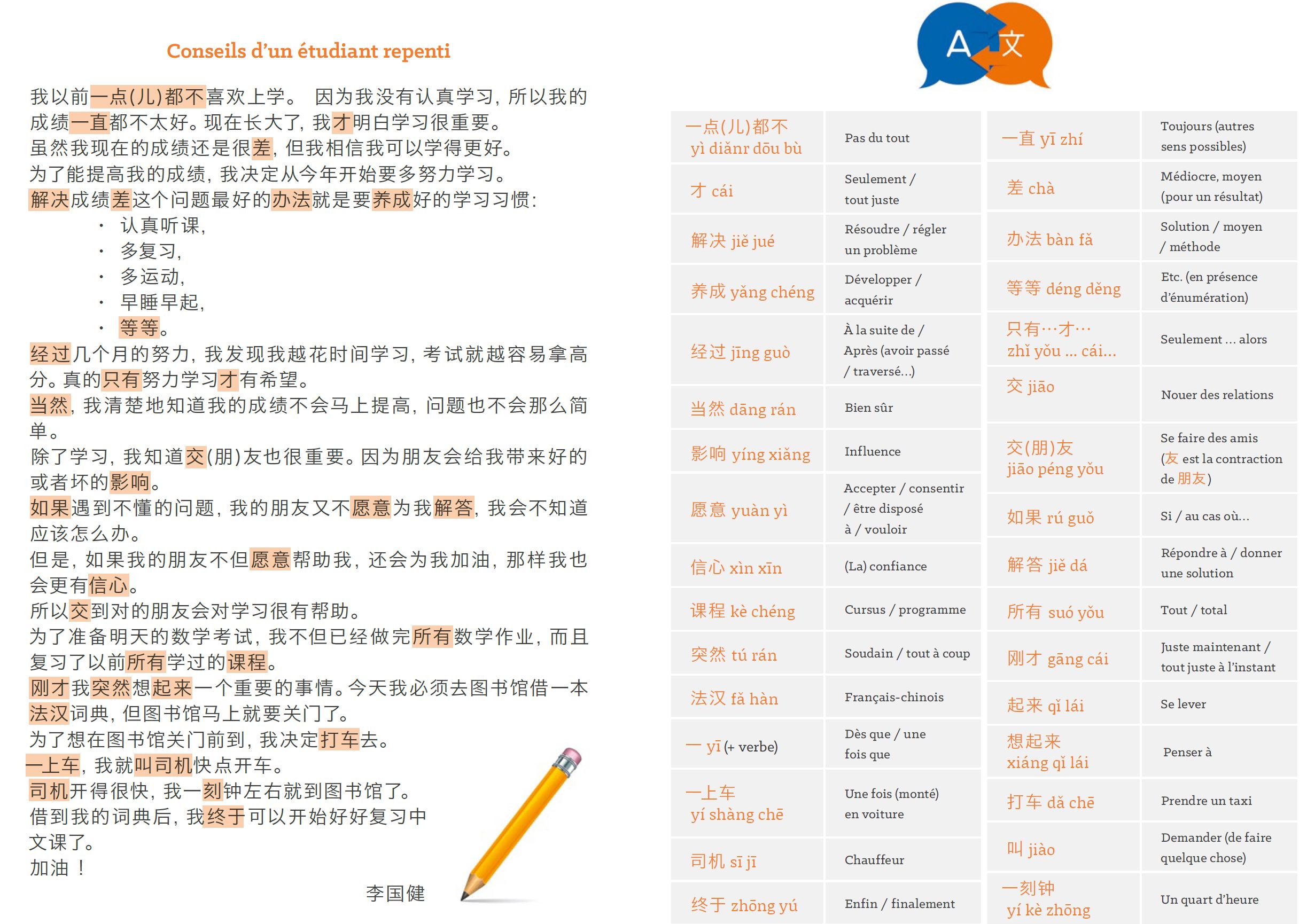 Manuel de chinois (format A5) conçu, mis en page et imprimé en FRANCE.